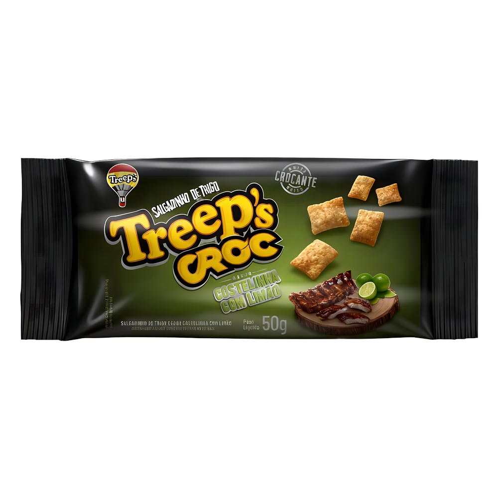 Chegou o Treep’s Croc Sabor Costelinha com Limão 50g! Um salgadinho de trigo com uma textura super crocante e a combinação perfeita do defumado com o cítrico. Seu formato de “almofadinha” é ideal para quem busca uma crocância diferenciada.